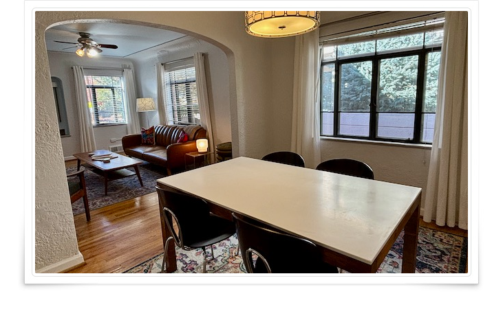 This beautiful home still has its original 1940s charm with wood floors, graceful archways, and cove ceilings. The main floor is comprised of a living room, a dining room, a kitchen, two bedrooms, and a bathroom. The finished basement offers two additional non-conforming rooms with large closets, a bathroom, and a laundry room with ample storage space. The property management takes care of the yard so you can enjoy a peaceful backyard setting shaded by mature maple trees without the hassle of yard work. It is located just blocks from Cherry Creek North, within walking and biking distance to shopping, restaurants, city parks, and cultural gems.